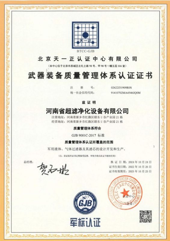 河南省超濾凈化設(shè)備有限公司成立于2018年,座落于河南省新鄉(xiāng)市,是一家集濾芯、過(guò)濾器、成套過(guò)濾裝置及液壓附件、液壓泵、特種閥等產(chǎn)品的研發(fā)、生產(chǎn)、銷(xiāo)售、技術(shù)服務(wù)為一體的綜合性企業(yè)。主要服務(wù)于國(guó)內(nèi)的航空、航天、船舶、核工業(yè)、煤碳、石油化工、電力、工程機(jī)械等行業(yè)。公司擁有2項(xiàng)發(fā)明專(zhuān) 利(ZL 2024 1 0110610.0 、ZL 20243 1 1806105.1)和6項(xiàng)實(shí)用新型專(zhuān) 利(ZL 202220053751.X、ZL202222784245.0、ZL202222578329.9、ZL202222630720.9、ZL202222864294.5、ZL202222712176.2),研發(fā)人員的不懈努力,銳意進(jìn)取,加上經(jīng)驗(yàn)豐富的技工與生產(chǎn)設(shè)備的結(jié)合,更好的產(chǎn)品技術(shù)使得質(zhì)量有了更可靠的保障,保證了產(chǎn)品的及時(shí)交付,增強(qiáng)了企業(yè)的核心競(jìng)爭(zhēng)能力。公司是過(guò)濾與分離行業(yè)協(xié)會(huì)會(huì)員單位,秉承“以質(zhì)量求生存,靠創(chuàng)新謀發(fā)展”的指導(dǎo)思想,始終把產(chǎn)品質(zhì)量放在前位,不斷進(jìn)取,持續(xù)改進(jìn),精益求精,按照ISO9001標(biāo)準(zhǔn)建立了一套完善的質(zhì)量保證管理體系,2022年通過(guò)了國(guó) 軍標(biāo)《GJB9001C-2017》質(zhì)量體系認(rèn)證,使公司的產(chǎn)品質(zhì)量得到提升,也將規(guī)范公司的管理,為客戶(hù)提供更多的、穩(wěn)定的高品質(zhì)產(chǎn)品。2023年,公司獲得了高新 技術(shù)企業(yè)榮譽(yù)稱(chēng)號(hào)。2024年,獲批成立新鄉(xiāng)市航天精密流體元件技術(shù)工程研究中心。